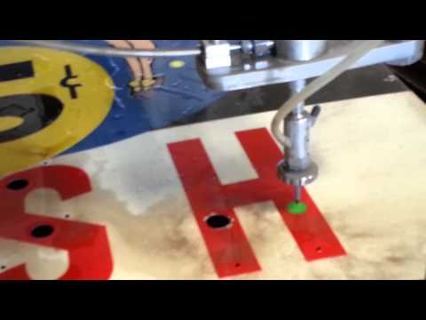 Here we have a vintage porcelain sign from 1960s era advertising a car wash from Texas. The owner wanted to add accent lights to enhance the affect. The task at hand was to cut 1 - 1 / 16" and 3 / 16" holes spaced specifically from customer's layout into porcelain art. This project proved to be more difficult than it sounded as laser cutting and high definition plasma cutting both jeopardized the integrity of the porcelain coating on the steel. The Water Jet easily cut this project without damaging the antique surface, thus maintaining the integrity of the porcelain for years to come.